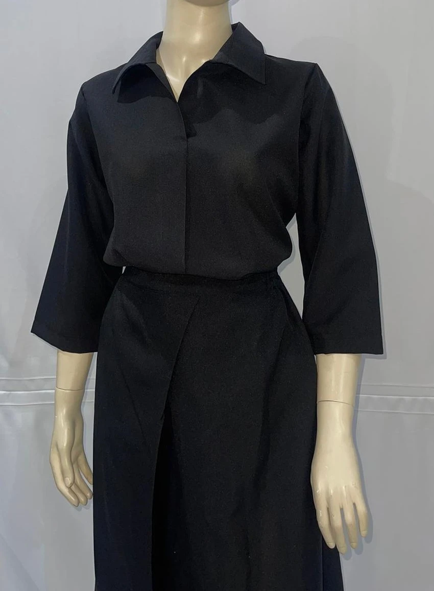 يونيفورم ضيافه بسيط و مميز اسود مع اسود يمكن اختيار بين البنطلون و التنورة